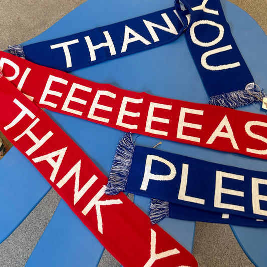 Pleeeeease / Thank You - Football Scarf by David Shrigley